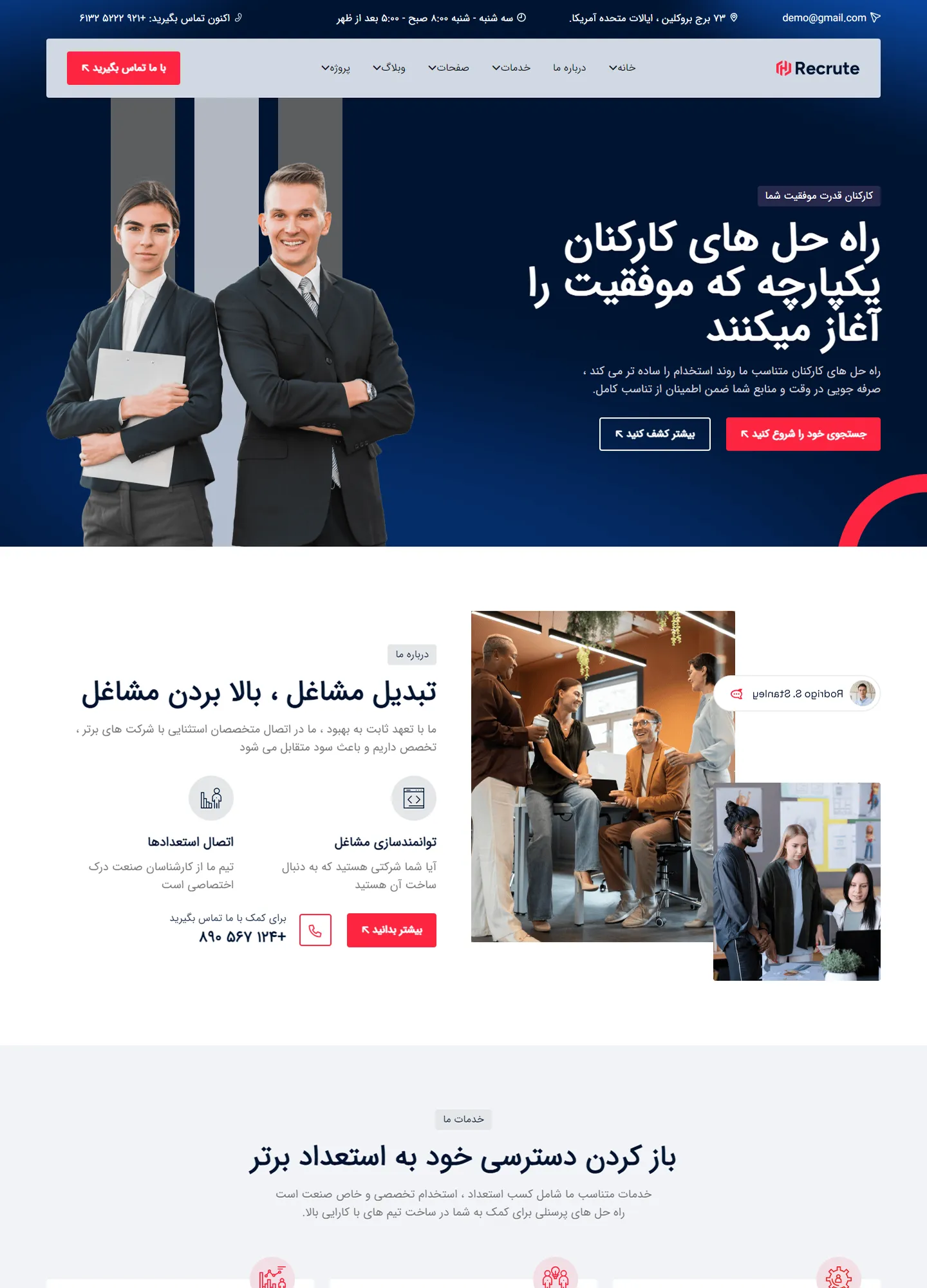 recrute@hotmail.comاحساس راحتی کنید تا با هرگونه سؤال ، سوالات یا نیازهای پرسنلی که ممکن است داشته باشید به ما دسترسی پیدا کنید.با تجربه ما